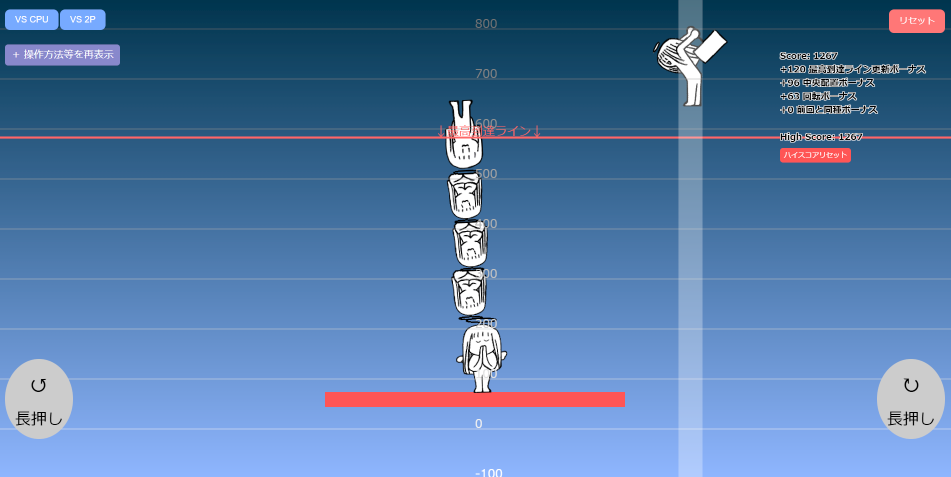 様々なうゆゆを台の上に積み上げるゲーム。個人で積み上げてハイスコアを狙うモード、CPUと対戦して10ターンの間のハイスコアを競うモード、ローカルで2Pと対戦するモードがある。